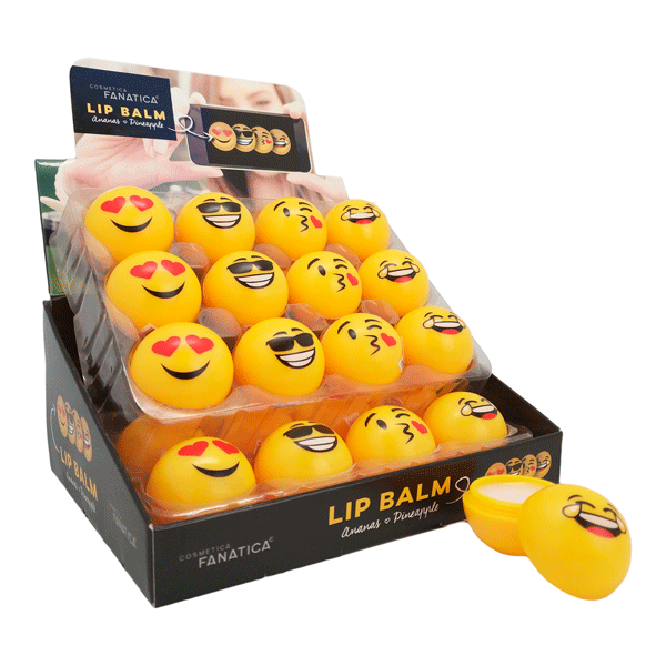 ¿Qué mejor regalo practico para regalar que un bálsamo labial? Este año os presentamos un nuevo diseño de bálsamo, con un divertido diseño con las caritas de los emoticonos del whatsapp Se sirven en 4 diseños surtidos. Diámetro: 3,7cm Expositor completo 24unds.