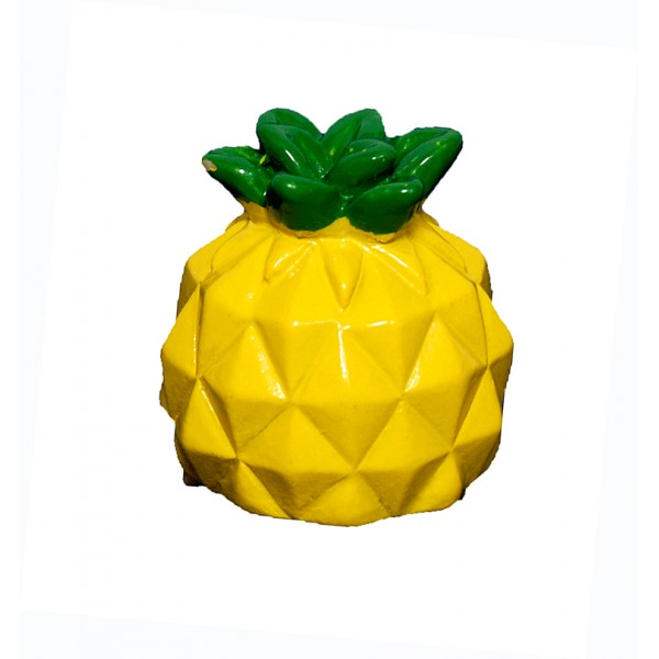 Bálsamo labial en forma de piña, presentado en bolsa transparente con cierre adhesivo.