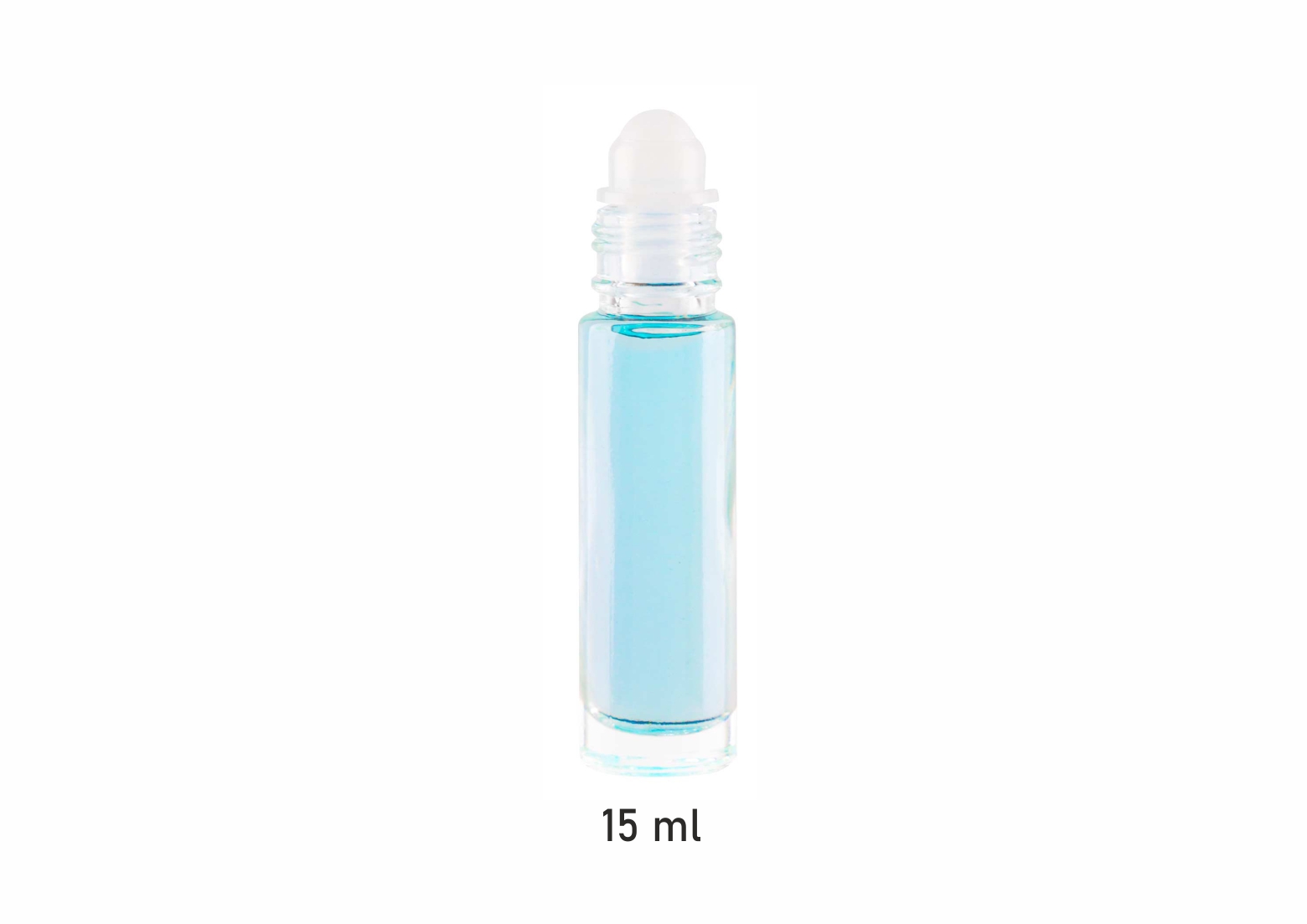 Frasco de vidrio 15 ml con bola roll-on, tapon plástico.