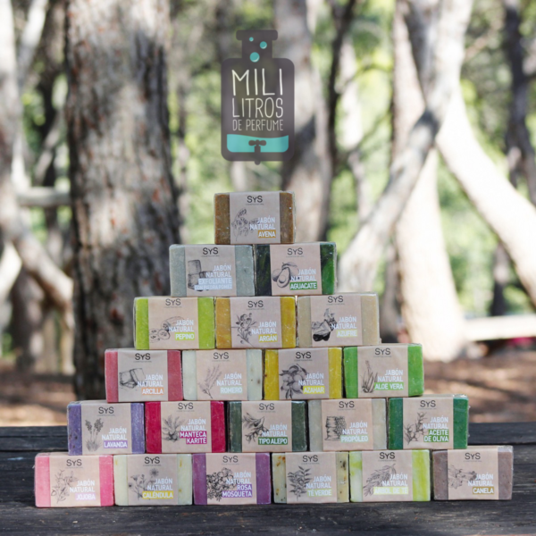 Los Jabones Naturales SyS están elaborados de manera artesanal utilizando una base natural de Aceite de Oliva, con un alto contenido en Ácidos Grasos Esenciales (Ácido Oleico), que ayuda a restaurar los niveles naturales de humedad en la piel. Su riqueza en vitaminas antioxidantes como la Vitamina E, ayuda a nutrir, regenerar y suavizar la piel. Sin Parabenos. Sin sulfatos.